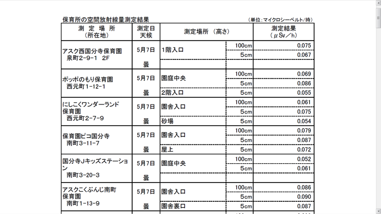 西東京から三鷹・国分寺・八王子など軒並み0.06μ㏜/h越えの状態